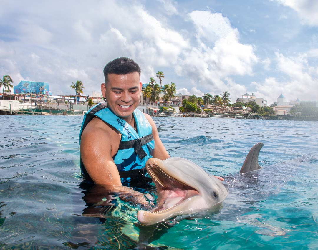 Todas las actividades en Cancún son especiales, pero el nado con delfines es mágico y está acompañado de diferentes comportamientos como Belly Ride, Boogie Push, Abrazo, Saludo de mano, Beso, Foot Push, Dorsal Tow, entre muchos más. Ven a convivir con ellos.